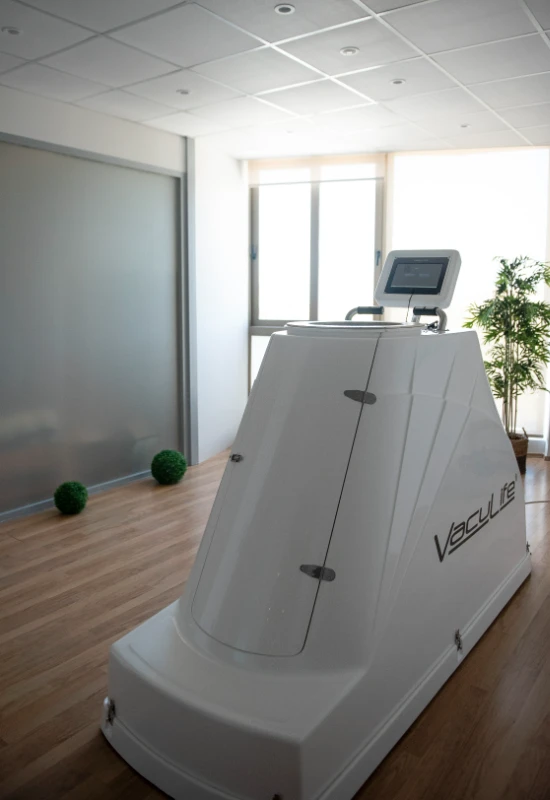 Το VacuLife προσφέρει αερόβια άσκηση σε θάλαμο υποπίεσης. Περπατήστε ή τρέξτε στο διάδρομο υπό συνθήκες αρνητικής πίεσης ή υπέρυθρων, από τη μέση και κάτω. Αυτή η μέθοδος μεταμορφώνει τις αναλογίες σας και εξαλείφει τις ενοχλητικές «μεσογειακές» ατέλειες. Χρησιμοποιήστε το VacuLife για γρήγορα αποτελέσματα.