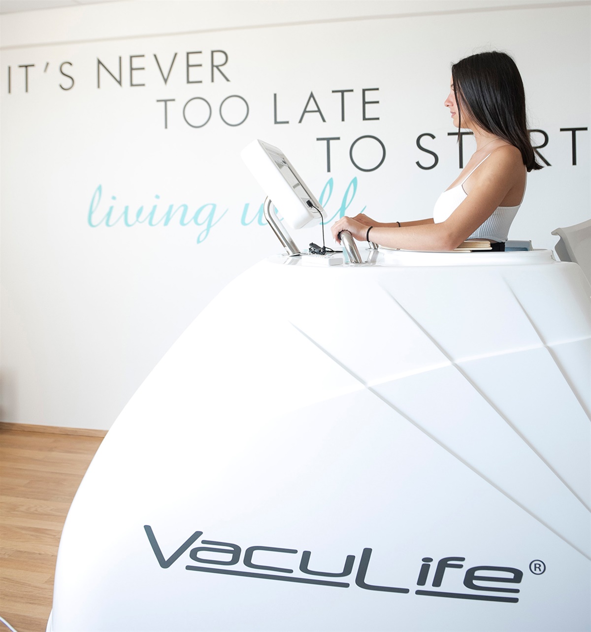 Το VacuLife προσφέρει αερόβια άσκηση σε θάλαμο υποπίεσης. Περπατήστε ή τρέξτε στο διάδρομο υπό συνθήκες αρνητικής πίεσης ή υπέρυθρων, από τη μέση και κάτω. Αυτή η μέθοδος μεταμορφώνει τις αναλογίες σας και εξαλείφει τις ενοχλητικές «μεσογειακές» ατέλειες. Χρησιμοποιήστε το VacuLife για γρήγορα αποτελέσματα.